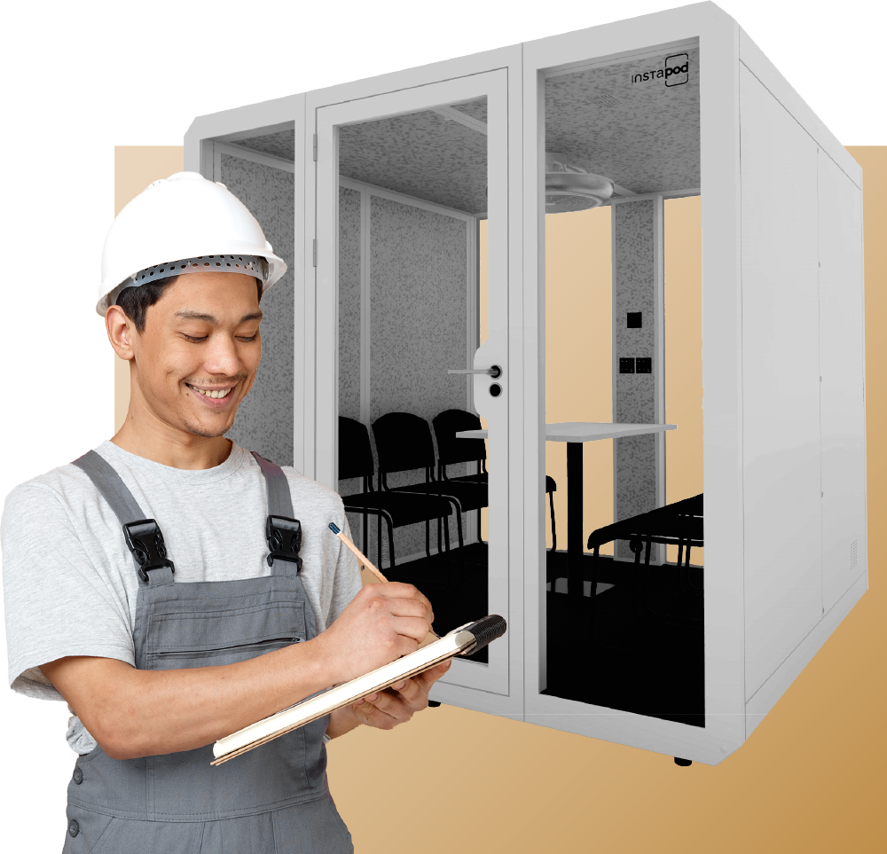 - 1-year on-site limited warranty coverage on the electrical (lighting, socket, exhaust fan, switch), hardware/consumables (lockset, wheel, carpet) and furniture by InstaPod (table, chair).